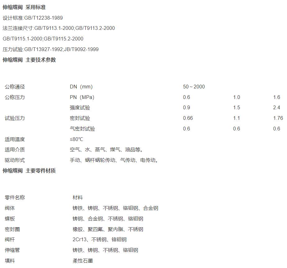 2、伸缩蝶阀除了能作调节和截流作用、补偿管道温差所产生的热胀冷缩功能外,还能为安装更换、维修阀门提供方便。