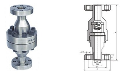 H42Y、H42W升降立式止回阀正常处于关闭状态,由于管线中进口端介质的压力作用,而克服弹簧阻力使阀门开启。当进口端介质压力低于出口端时,弹簧将阀芯推向阀座而使阀门关闭,阻止介质逆流,故起止回作用